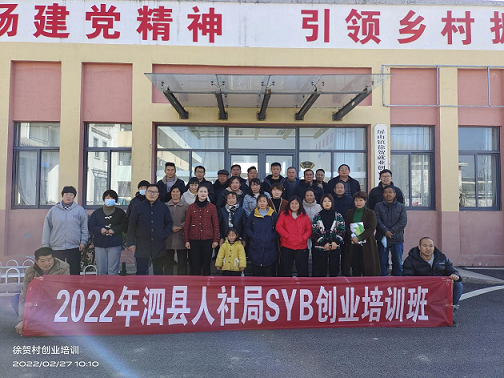 2022年2月27日上午,由泗縣人社局主辦、宿州東潤職業(yè)培訓(xùn)學(xué)校承辦的2022年第二期SYB創(chuàng)業(yè)培訓(xùn)班在泗縣屏山鎮(zhèn)徐賀村圓滿結(jié)業(yè)。