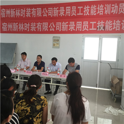 2016年7月20日,在宿州新林時(shí)裝有限公司隆重舉行了新錄用人員技能培訓(xùn)開(kāi)班典禮。此次培訓(xùn)是新林公司委托宿州東潤(rùn)職業(yè)培訓(xùn)學(xué)校進(jìn)行的新錄用員工技能培訓(xùn)。在宿馬工業(yè)園人力資源服務(wù)中心的協(xié)調(diào)幫助下,雙方共同嚴(yán)密制定了培訓(xùn)計(jì)劃和教學(xué)計(jì)劃,以便使得此次培訓(xùn)順利進(jìn)行并達(dá)到預(yù)期的效果。此次動(dòng)員大會(huì)由宿馬工業(yè)園人力資源服務(wù)中心副主任姜永主持,東城區(qū)管委會(huì)副主任、宿馬工業(yè)園人力資源中心主任徐永朋做了動(dòng)員布署,新林時(shí)裝有限公司柳永祥總經(jīng)理做了積極發(fā)言。我校綜合培訓(xùn)部王忍存部長(zhǎng)出席會(huì)議并講話(huà)。