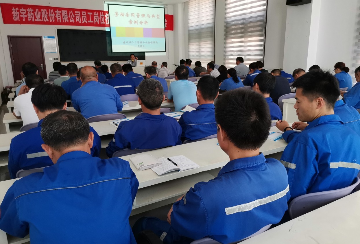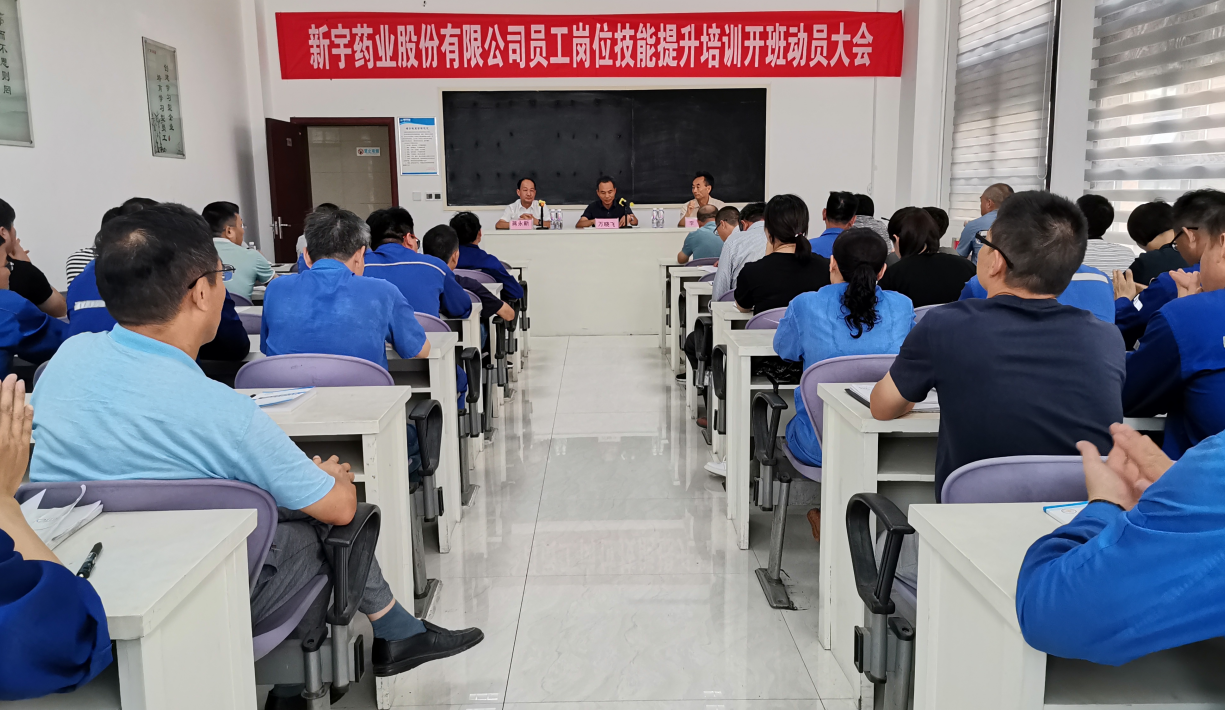 新宇藥業(yè)股份有限公司制藥加工工員工崗位技能提升培訓(xùn)班開(kāi)班動(dòng)員大會(huì)于2019年8月14日下午14時(shí),在新宇公司會(huì)議室隆重舉行。