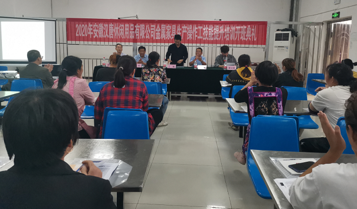 安徽漢唐休閑用品有限公司金屬家具生產(chǎn)操作工(中級(jí))技能提升培訓(xùn)班開(kāi)班典禮,于2020年9月22日下午5時(shí)在安徽漢唐公司隆重舉行 。