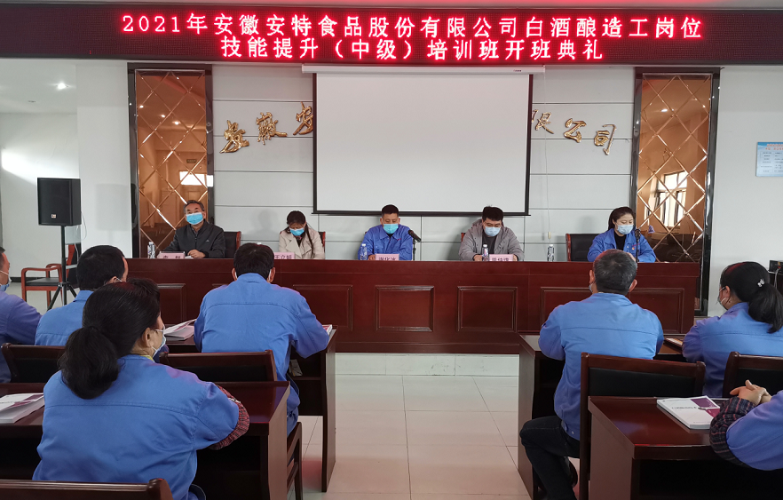 安徽安特食品股份有限公司白酒釀造工(中級(jí))技能提升培訓(xùn)班開班典禮,于2021年4月9日上午9時(shí)在安特公司培訓(xùn)室隆重舉行 。