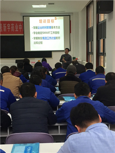 參加培訓(xùn)的新宇藥業(yè)公司的中層管理人員和后備人才共有80多人。宿州市民營企業(yè)家培訓(xùn)中心(宿州東潤職業(yè)培訓(xùn)學(xué)校)理事長張立今、綜合培訓(xùn)部部長王忍存、新宇藥業(yè)公司總經(jīng)理萬曉飛、副總經(jīng)理李民、政工人事部部長張佑民出席了本次開班典禮。新宇藥業(yè)公司總經(jīng)理萬曉飛做了動員并提出了三點要求:1、活學(xué):養(yǎng)成終生學(xué)習(xí)的好習(xí)慣,活著就要學(xué)習(xí);2、學(xué)活:通過老師授課指導(dǎo),靈活感悟,分析與實際相結(jié)合;3、活用:學(xué)習(xí)與生產(chǎn)管理實際相結(jié)合,不斷提高自身管理水平;通過此次培訓(xùn)要達(dá)到三個目的:1、思想水平、思維方式要提高;2、工作績效要提高;3、通過培訓(xùn)提高團(tuán)隊、集體的力量;最終的目的是推動企業(yè)發(fā)展。宿州東潤職業(yè)培訓(xùn)學(xué)校綜合培訓(xùn)部部長王忍存在會上做了發(fā)言并對保質(zhì)保量的完成此次培訓(xùn)作了幾點保證。開班第一課由宿州市民營企業(yè)家培訓(xùn)中心特聘教授武永成講授,他講授的專題是《時間管理》,武教授的講課,理論聯(lián)系實際,深入淺出,生動幽默,實用性、針對性強(qiáng),受到了全體學(xué)員和新宇藥業(yè)公司領(lǐng)導(dǎo)的一致好評!