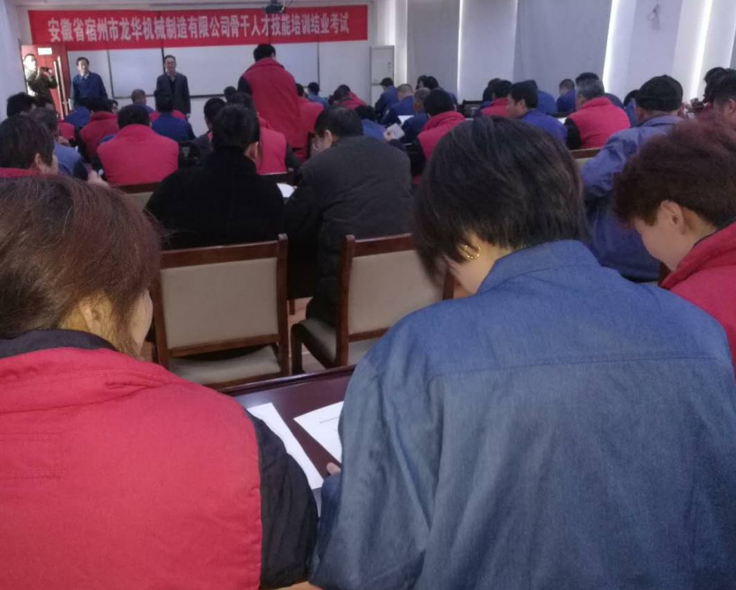 2019年3月29日下午14時(shí),安徽省宿州市龍華機(jī)械制造有限公司骨干人才技能培訓(xùn)班結(jié)業(yè)考試在安徽龍華機(jī)械公司培訓(xùn)室舉行,龍華公司李輝副總經(jīng)理親臨考場監(jiān)考。