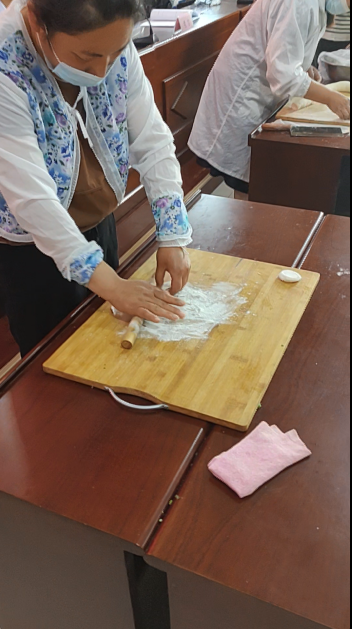 本次培訓(xùn)課程有多款面點(diǎn)的制作,主要是對(duì)面、水、油、糖等的配比,并教大家和面、揉面、搟皮兒等基本要領(lǐng)。培訓(xùn)現(xiàn)場(chǎng)老師們進(jìn)行手把手地教學(xué),學(xué)員們個(gè)個(gè)精神飽滿、熱情高漲,一邊仔細(xì)聆聽(tīng)操作手法,認(rèn)真記著筆記,一邊進(jìn)行實(shí)際演練,課堂秩序井然、學(xué)員們配合默契。