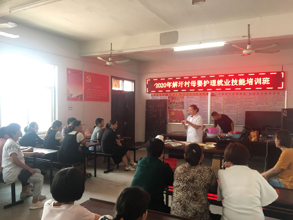 為了貫徹落實國家扶貧政策,扎實有效做好技能脫貧培訓工作。2020年9月8日在解圩村村部隆重舉行了解圩村母嬰護理員培訓班開班典禮。