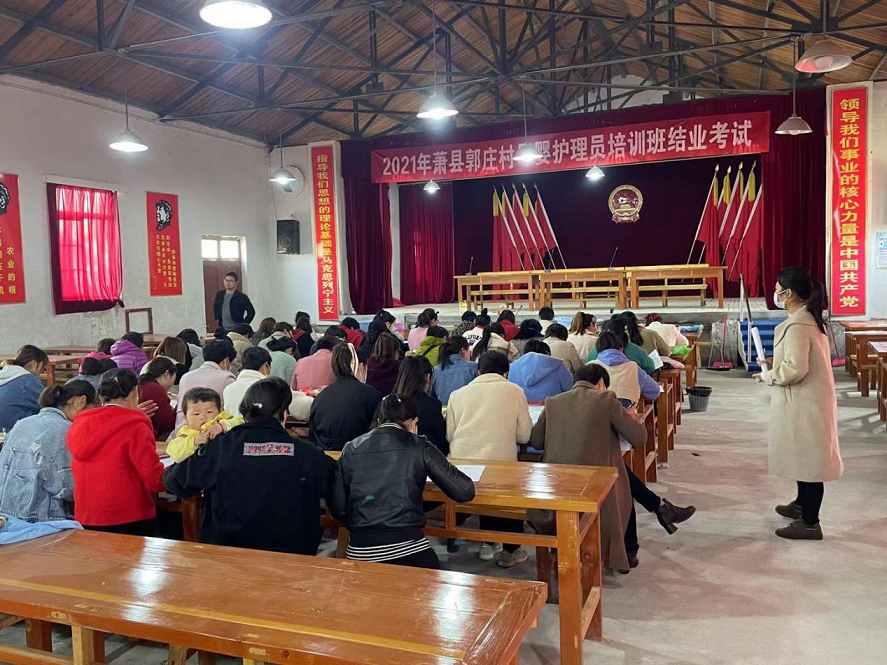 2021年4月8日上午,蕭縣郭莊村母嬰護(hù)理員培訓(xùn)班結(jié)業(yè)考試在郭莊村大禮堂隆重舉行。