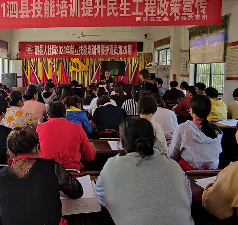 2021年5月14日,由泗縣人社局、泗縣技工學(xué)院、宿州東潤(rùn)職業(yè)培訓(xùn)學(xué)校共同舉辦的母嬰護(hù)理員就業(yè)技能培訓(xùn)班在劉圩鎮(zhèn)四山村隆重開(kāi)班,參加此次開(kāi)班典禮的有泗縣人社局領(lǐng)導(dǎo)、泗縣技工學(xué)院領(lǐng)導(dǎo)、宿州東潤(rùn)職業(yè)培訓(xùn)學(xué)校泗縣分校負(fù)責(zé)人,以及63名學(xué)員。