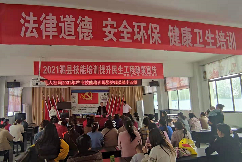 為了貫徹落實(shí)國(guó)家政策,扎實(shí)有效做好就業(yè)技能培訓(xùn)工作。2021416日泗縣山頭鎮(zhèn)惠廟村母嬰護(hù)理就業(yè)技能培訓(xùn)班正式開(kāi)班。本期培訓(xùn)班參訓(xùn)學(xué)員共41人,培訓(xùn)時(shí)間為150個(gè)課時(shí)。
