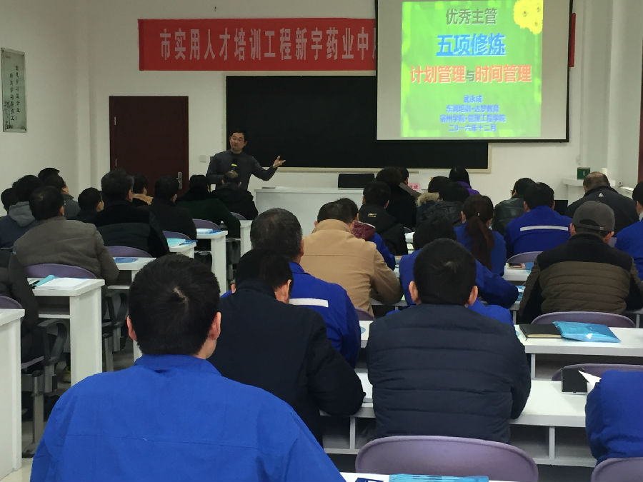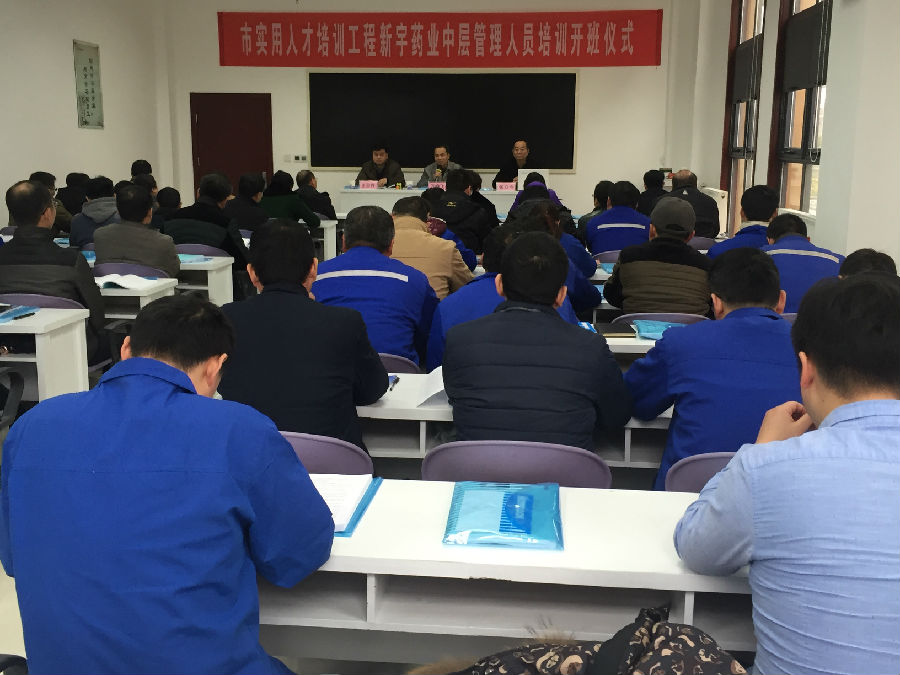 為了深入貫徹市安徽省《關于進一步加強企業(yè)人才工作的意見》和宿州市《關于在全市重點民營企業(yè)加強人才服務工作的通知》及《宿州市開展企業(yè)需求實用人才培訓實施的意見》,2017年1月7日上午,新宇藥業(yè)公司中層管理人員與后備人才培訓班開班典禮在新宇藥業(yè)公司培訓教室隆重召開。新宇藥業(yè)公司中層管理人員和后備人才培訓班,是根據(jù)新宇藥業(yè)公司加強企業(yè)中層管理干部隊伍建設的迫切要求,由宿州市民營企業(yè)家培訓中心(宿州東潤職業(yè)培訓學校)利用政府實用人才培訓經(jīng)費,為新宇藥業(yè)公司量身定做開展的培訓。