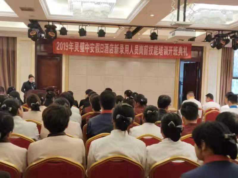 為了進(jìn)一步推動(dòng)企業(yè)發(fā)展,落實(shí)民生工程政策,在靈璧縣人力資源保障局領(lǐng)導(dǎo)的指導(dǎo)下,我校組織的靈璧中安假日酒店有限公司餐廳服務(wù)員(初級(jí))崗前技能培訓(xùn)班開班典禮于2019年11月12日下午15時(shí)在中安酒店隆重舉行。